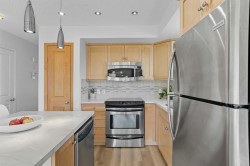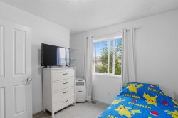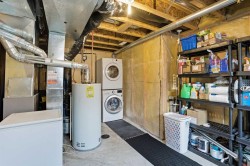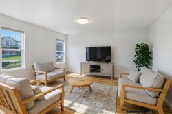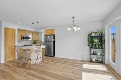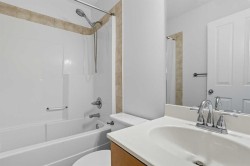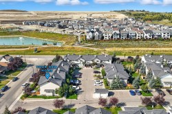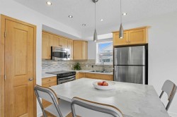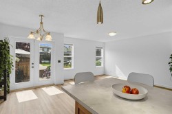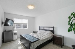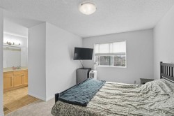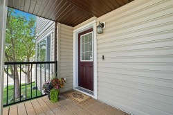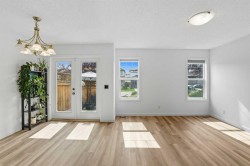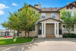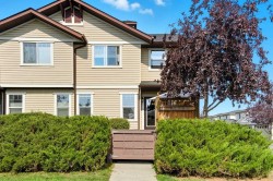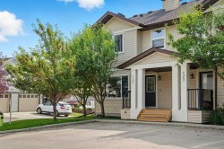 Bright and pristine 3-bedroom, 2.5-bath END UNIT townhome is one of the best in the complex, offering over 1,360 sq. ft. of living space plus 600+ sq. ft. of unfinished basement with incredible potential. The main floor is flooded with natural light and has been freshly updated with brand new vinyl flooring and baseboards, giving it a modern, clean look. The kitchen is a standout, featuring brand new laminate countertops, a large central island with a breakfast bar, shaker-style cabinetry, stainless steel appliances, and stylish pendant lighting, perfect for entertaining and meal prep. Brand new carpet on the staircase and upper floor, along with fresh paint throughout both levels, completes the refreshed look. Upstairs, you'll find 3 bedrooms, including a primary suite with a 4-piece ensuite and large walk-in closet, plus another full bathroom for family or guests. The basement is thoughtfully laid out with a furnace room tucked neatly in the corner, rough-in for a future bathroom, and plenty of space to add 2 more bedrooms, making it a feature-ready space for the new owners. Enjoy indoor and outdoor living with a covered front porch and private semi-fenced sunny backyard patio. Two titledn parking stalls are conveniently located right outside your front door. Set in the welcoming Sagewood community, you'll love the quiet tree-lined streets, nearby parks, pathways, and schools. This home has been thoughtfully updated, meticulously maintained, and is truly move-in ready. Offering amazing value and unbeatable convenience, it’s easy to fall in love with this gem!