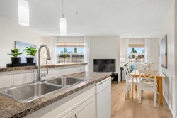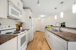 Welcome to #2121–700 Willowbrook Road, located in the vibrant community of Willowbrook, Airdrie! Here you will discover effortless living in this bright and beautifully updated 2-bedroom 2-bath condo which is a perfect blend of comfort, convenience and value. As you enter, you’ll be impressed by the abundance of natural light streaming in from the SOUTH-EAST EXPOSURE. Stylish new vinyl flooring (2024) leads you through a welcoming front entrance, complete with a spacious coat closet featuring built-in shelving. Stepping into the kitchen you will love the open-concept design with generous storage, a pantry, a NEW DISHWASHER (2024) and a large island with room for bar stools, creating the ideal setting for casual meals or entertaining. Just off the kitchen is space for a formal dining table, a RARE feature in apartment living. The living room is bright and inviting, with plenty of room for friends, family and nights in. This versatile living space offers many ways to layout your furniture, with the option to mount your TV on the wall with swivel to be visible from the sofa and the kitchen. A notable feature is that the entire unit has been FRESHLY PAINTED (October 2025) in a beautiful off-white tone that enhances the natural light. The primary bedroom is a true retreat. It features a large WALK-IN CLOSET with built-in shelves, plus an additional closet with bi-fold doors that can serve as extra storage or linen space. The four-piece ensuite bathroom includes a new toilet (2025). The room easily accommodates a king-sized bed with plenty of space to spare and offers a large window overlooking the private balcony. A SECONDARY BEDROOM with a large window provides versatility and can serve as a guest room, office or fitness space. A second three-piece bathroom with a stand-up shower, new toilet (2025) and convenient IN-SUITE LAUNDRY complete this well-designed home. For added peace of mind, the BOILER SYSTEM for the IN-FLOOR HEATING was REPLACED in (2024). Stay warm in the winter months with your TITLED, UNDERGROUND PARKING STALL. There is also an abundance of outdoor VISITOR PARKING for your friends and family to visit. The condo fees conveniently include everything except electricity (covering heat, water, landscaping, snow removal, professional management & more). Living in Willowbrook means having the best of both worlds - easy access to all of your essential amenities nearby including Main Street, Shoppers, Sobeys, Original Joes, Good Earth and more. From your building, you can also step right into the extensive walking paths of NOSE CREEK PARK to enjoy all year round, ideal for pet owners. A standout feature is the complex’s FLEXIBLE PET FRIENDLY POLICIES, offering peace of mind for pet owners. Whether you're a first-time home buyer, downsizing, or an investor searching for a fantastic move-in ready home, you have found it here. This apartment offers exceptional value with its recent updates, thoughtful layout and inclusive condo fees. Book today!