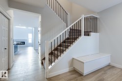 Welcome to Beaumont! This 2,000+ sq.ft. 4 bedroom, 3 bathroom home by award-winning builder Montorio Homes features the popular Venice model. A true classic with modern upgrades, this home boasts a stunning 18’ open-to-below Great Room complete with an electric fireplace enhanced by upgraded tile and mantel. The floorplan is ideal for families seeking functional living spaces, offering a main floor bedroom with full bath, a mudroom, a large pantry, and convenient upstairs laundry. The designer kitchen provides plenty of counter space for meal prep and entertaining, complemented by large windows that fill the home with natural light. Upgrades include: 9’ ceilings, Luxury vinyl flooring, Upgraded cabinetry, Quartz countertops with backsplash, Custom railing, Smart home security system, Separate side entrance to the basement for potential rental income. Located with quick access to Edmonton and the International Airport, this home offers the perfect balance—city convenience without the hustle and bustle!