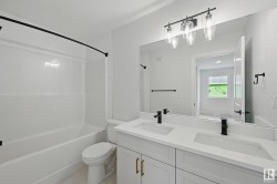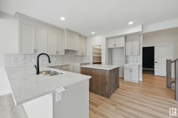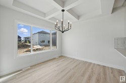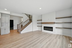 The Davis is a spacious single-family home with 4 bedrooms, bonus room, and 3 full baths. Main Floor includes a large mud room with built-in bench and storage, a flex/bedroom and Full Bath with stand-up shower... great for parents and in-law visits. Home features a separate side entrance to the basement for potential future development, which includes rough-in for a future bathroom. The Home includes 9' basement and main floor walls, enhancing spaciousness and style. The large kitchen overlooks the great room and dining area and features quartz counter tops with lots of cabinet space and a separate butler pantry with additional cooktop and exhaust fan. Kitchen includes full height cabinets with self-closing drawers and doors for seamless storage and a large flush eating bar. Great room features a 47" electric linear fireplace, creating a warm and inviting ambiance. Completing the home is the attached double garage and lot with full sideyards.