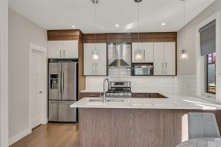 FRONT UNIT with WEST EXPOSURE, CENTRAL AC, and a thoughtful layout designed for comfort and flexibility. NATURAL LIGHT fills the main level where a front living room overlooks the street and a GAS FIREPLACE with floor-to-ceiling tile adds a relaxing focal point. Wide-plank HARDWOOD floors extend into a central dining area with a table and chairs included. The modern kitchen is appointed with QUARTZ COUNTERTOPS, a peninsula island, GAS STOVE, FULL HEIGHT CABINETS, CORNER PANTRY, and stainless steel appliances. A tucked-away powder room completes the main floor. Upstairs, a SKYLIGHT brightens the stairwell and illuminates the upper level. The primary bedroom is spacious with a COFFERED CEILING, WALK-IN CLOSET with BUILT-IN ORGANIZERS, and a LUXURIOUS ENSUITE featuring a DUAL VANITY and STAND-UP SHOWER. A second bedroom includes its own 4PC ENSUITE with skylight, creating a DUAL PRIMARY FLOORPLAN ideal for guests, roommates, or family members. The FINISHED BASEMENT expands the living space with a rec room perfect for movie or game nights, a THIRD BEDROOM that offers flexibility for guests, a teenager’s retreat, or a quiet home office, a 3PC BATH with a sleek stand-up shower for modern convenience, and a thoughtfully placed laundry area with washer/dryer included for everyday practicality. Outside, a PRIVATE FRONT COURTYARD creates ample outdoor space to barbeque and unwind, complemented by low-maintenance landscaping. A SINGLE GARAGE provides secure parking and storage. Situated in the established neighborhood of KILLARNEY/GLENGARRY, this home balances quiet residential streets with urban convenience. Westbrook LRT, Killarney Aquatic Centre, and numerous local parks are nearby along with schools, coffee shops, and restaurants on 17th Avenue. Quick access to downtown and major routes ensures effortless connectivity. This thoughtfully designed residence combines style, comfort, and a walkable location for a lifestyle that feels both connected and at ease.