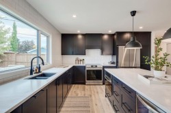 Welcome to one of Maple Ridge’s most desirable pockets, where active lifestyle meets bespoke luxury. This STUNNING, fully renovated bungalow is an entertainer’s dream, perfectly situated steps from Calgary’s top city-owned golf course and a large community green space. Enjoy unparalleled year-round recreation, from summer golf and winter sledding to ski-in/ski-out cross-country skiing right outside your door. Driving up, the home’s captivating curb appeal is instantly noticeable. The charming exterior features upgraded triple pane windows, defined by tasteful black trim, contrasting beautifully against the white stucco cladding and decorative archways. Step inside to be greeted by seamless front-to-back sight lines that flood the open-concept living space with maximum natural light. The heart of the home is the meticulously crafted gourmet kitchen, maximizing both functionality and style. It flows seamlessly through the spacious dining area, the manicured backyard, and the charming living room - anchored by two beautiful south facing windows. The primary suite offers a true sanctuary with a generous walk-in closet and a spa-inspired 4-piece ensuite featuring a sleek, curb-less shower. The main level is completed by two additional well-sized bedrooms, a modern 3-piece bathroom with ample storage, and a practical office nook. You'll continue to be impressed by the fully developed basement. It hosts a massive wet bar that could also function as a second full kitchen (if desired), equipped with a sink, full-sized fridge, dishwasher, stove top, and microwave hood fan, plus an island with seating. The basement’s open floor plan is ideal for a media room, play area, or multi-purpose use. Two large additional bedrooms and a 3-piece bathroom complete this versatile living space. The outside presents a professionally landscaped backyard, maximized for multiple uses, including a poured concrete sitting area, a fire-pit zone, and grass space. It also provides secure trailer storage via the paved alley. The front detached garage is a mechanic or hobbyist’s dream, measuring a large 22’ x 23’, drywalled, insulated, and equipped with a sub-panel and 220V plugs. Complete with unmatched efficiency and peace of mind with updated hvac, electrical, plumbing, roofing, insulation, and so much more! Located on a quiet street with little to no traffic, this home provides a safe, mature neighborhood to call your own. **Be sure to view the full detailed UPGRADE LIST and 3D VIRTUAL OPEN HOUSE TOUR for a better look**