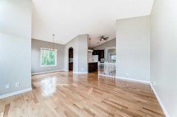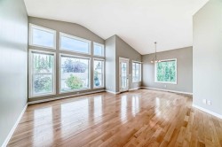 YOUR NEW HOME WHERE MEMORIES ARE MADE. Welcome to this beautifully maintained bungalow with 2,500 sq ft of living space, nestled in the vibrant and family-friendly community of West Springs, one of Calgary’s most sought-after neighborhoods known for its excellent schools, parks, and convenient amenities. Step inside to a bright, spacious tiled foyer that flows into an inviting open-concept main floor. Soaring vaulted ceilings, rich hardwood flooring, and large windows fill the space with natural light, creating a warm and welcoming atmosphere. The chef’s kitchen features elegant granite countertops—perfect for casual family meals or entertaining guests. The main floor boasts a generous primary bedroom complete with a walk-in closet, a spa-like ensuite featuring a standing shower and multi-jet soaker tub. An additional room on the main level offers flexibility as a cozy guest bedroom or home office, along with a convenient 2-piece powder room and main floor laundry. The fully finished basement adds even more living space with a large family room centered around a cozy wood-burning fireplace, two oversized bedrooms, and a full bathroom—ideal for teens, guests, or extended family. Step outside, enjoy the privacy of a low-maintenance vinyl fence surrounding a massive pie-shaped lot. The backyard is a true oasis with a multi-level deck, fruit trees, flowering perennials, and RV parking via the rear lane. It’s perfect for summer barbecues, kids’ playtime, or simply relaxing under the stars. Additional features include air conditioning, a water filtration system, garage shelving, and a no-pet, non-smoking history. This is more than a home—it’s a lifestyle. Book your private showing today!