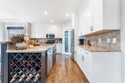 Welcome home to this perfectly located home situated in a serene, quiet cul de sac in the estate area of Auburn Bay and just a quick walk to the year round LAKE! This Morrison built home has it all including over 3200 sq. ft of premium developed space, an open floor plan, lots of upgrades, tons of natural light with a great floor plan for entertaining your guests! The kitchen is the focal point and has plenty of cabinet and counter space, granite countertops, corner pantry, large island with a built in wine rack, BRAND NEW dishwasher, gas stove, tiled backsplash and room for 4 barstools to gather! The dining area adjacent to the kitchen has space for a large table and 6-8 chairs and the living room can accommodate your sectional and has a gorgeous stone faced gas fireplace! The main floor has 9' ceilings and is finished off with a half bathroom, mudroom and laundry area! Upstairs has an awesome bonus room that has an office space with beautiful built ins for extra storage and soaring vaulted ceilings. The primary bedroom is a great size and has a walk in closet and a full ensuite bathroom with a soaker tub separating the his and her sinks! The upper level is completed with 2 more bedrooms and another full bathroom for the kids! The walkout basement is finished with a 4th bedroom, a rec room with a cozy gas fireplace, another full bathroom and some extra storage space. There is also access out to the back yard from the rec room area. If that wasn't enough there is also Central A/C, Underground sprinklers, a private large back yard, a 22'7" x 24' garage, gleaming hardwood floors, salt water hot tub, premier location close to the LAKE, Hospital, a multitude of restaurants, shops, pubs, an off leash dog park, YMCA and SO MUCH MORE! This is a must see property that has so much to offer!