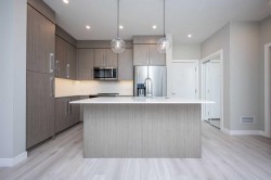 Bright and modern 1 bed, 1 bath unit (513 sq. ft.) located on the 2nd floor of The Maple, a 55+ complex in the University District adjacent to the Brenda Strafford Foundation. This open-concept suite features white-washed kitchen cabinetry, quartz countertops, a central island with breakfast bar, and stainless steel appliances including a smooth glass cooktop. Light cedar-toned laminate flooring, soft lighting, and floor-to-ceiling cabinets add to the inviting atmosphere.The spacious bedroom includes a walk-through closet and 4pc ensuite with marble-style flooring. Enjoy southwest exposure from the covered balcony, accessible from both the living area and bedroom.Residents benefit from optional access to Brenda Strafford Foundation amenities including a bistro, gym, hair salon, and social events (fee-based). Currently tenant-occupied offering a solid rental opportunity in a desirable, amenity-rich community.