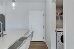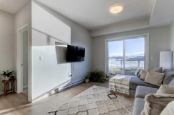 Welcome to this exceptional 1 bed, 1 bath condominium in the heart of Cranston’s coveted Riverstone community. Built in 2023, this third-floor unit offers a thoughtfully designed living space, seamlessly blending modern luxury with everyday comfort. Overlooking a serene pond, the large covered 72 sq ft balcony provides the perfect setting to enjoy your morning coffee or unwind in nature just steps from your door. The open-concept layout is as functional as it is beautiful. The kitchen is truly the heart of this home, offering stunning VIEWS OF THE POND and boasting QUARTZ countertops, STAINLESS STEEL Samsung appliances, extra pot lights, over-island pendant lighting, and a generously sized island. This condo stands out, including sleek window coverings, premium bathroom fixtures, all complemented by modern lighting that adds sophistication throughout. Practicality meets luxury with this unit's light and fresh feel. The seller has cared for it immaculately. It still looks, feels and smells brand new still. It includes one TITLED HEATED underground parking stall. The complex is PET-FRIENDLY, accommodating fish, birds, and up to 2 cats or 2 dogs (weighing up to 77 LBS each). Secure BIKE STORAGE is on the main floor, inviting you to explore the area’s extensive network of walking and biking trails. Condo fees are $242.47. For a one bedroom condo, what else could you ask for? Living in Cranston’s Riverstone means being part of a vibrant, amenity-rich community. Century Hall, the resident association hub, features a skating rink, splash park, tennis and basketball courts, and a playground. Nature lovers will revel in the nearby Bow River and parks, perfect for floating, fishing, or simply enjoying the outdoors. With easy access to major roadways, South Health Campus, YMCA and a variety of shopping and dining options, this property offers the perfect balance of tranquility and urban convenience. This one-of-a-kind condominium presents a rare opportunity to enjoy a lock-and-leave lifestyle without sacrificing space, style, or comfort. Schedule your private viewing today and discover everything this stunning home and community have to offer!