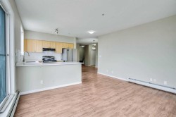 Amazing value for an amazing amount of space in this bright and spacious 2-bedroom plus den, 2 full bathroom corner unit condo! This large corner unit is flooded with natural light and features a larger-than-average wraparound balcony—perfect for relaxing or entertaining. The home is in excellent condition and located in a very clean and well-maintained building. The primary bedroom is generously sized and includes a spotless private ensuite bathroom, while the second bedroom has a convenient cheater door to the second full bath, essentially giving it ensuite access as well. A bonus den area offers the perfect spot for a tucked-away home office. The large kitchen is outfitted with maple cabinets, brand new quartz countertops, and brand new stainless steel appliances including a stove, fridge, and dishwasher. Both bathrooms also feature brand new quartz countertops, and luxury vinyl flooring has been installed throughout the living, dining, and bedroom areas. Additional highlights include in-suite laundry, a separate storage locker on the same floor, and a surface parking stall. Located close to major schools, shopping, Genesis Centre, train station, bus stops, walking trails, parks, and playgrounds—this unit combines space, style, and convenience at an unbeatable price. Don’t miss the photos and 3D tour!