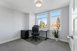Welcome to 2419 22 Street NW—an exceptional opportunity to own a beautifully appointed home in the heart of Banff Trail at an outstanding price point. This 4-bedroom, 3.5-bathroom semi-attached property offers a thoughtful blend of style, comfort, and functionality—perfect for a young couple, growing family, or professionals seeking walkability and convenience.Ideally located within walking distance to all levels of schooling from Kindergarten to the University of Calgary, as well as Foothills and Children’s Hospital, this home allows you to spend less time commuting and more time enjoying life’s quiet moments.Step inside to a bright and airy open-concept layout highlighted by soaring 10’ ceilings. The inviting living room flows seamlessly into the dreamy chef-inspired kitchen, complete with a large pantry, 5-burner gas cooktop, built-in ovens, and an expansive waterfall island—an ideal space for entertaining. West-exposed windows flood the home with natural light throughout the day, while the sleek, integrated rear-entry closet keeps everyday living tidy and organized. The dining area overlooks the backyard and is nicely tucked away from the front entry for added privacy.The upper level hosts a serene primary retreat featuring a light-filled 5-piece ensuite with a two-way gas fireplace and a generous walk-in closet. Two additional bedrooms, a well-appointed shared bathroom, and a convenient laundry room complete this level. A discreetly located 2-piece powder room sits on the landing to the lower level.The fully developed basement offers exceptional versatility—perfect for a home gym, movie nights, or hobbies—enhanced by in-floor heating for year-round comfort. Roughed-in for a wet bar in the massive rec space. A full bathroom, a spacious fourth bedroom, and ample storage complete the lower level.Outside, enjoy a private west-facing backyard with a low-maintenance deck, gas BBQ line, and room to entertain. Pride of ownership is evident throughout, with countless functional upgrades including central air conditioning and custom window coverings with blackout blinds in all bedrooms.Located just steps from the Banff Trail C-Train station, Confederation Park, and local favourites like Edelweiss Village, this home offers the walkable lifestyle so many desire but so few achieve.Move-in ready, impeccably maintained, and perfectly situated—this is one you won’t want to miss.