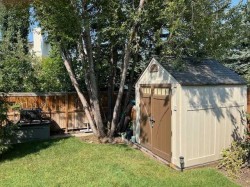 A beautifully maintained and fully developed 2-storey home with 3½ baths, perfectly situated on a quiet street in the heart of Hawkwood. This property has seen significant updates over the years, including a newer roof, newer garage door, two newer hot water tanks, a refreshed kitchen, renovated primary en-suite, and full removal of poly-b plumbing.The main floor features gleaming hardwood throughout, with a bright living and dining area leading into the updated kitchen complete with stainless steel appliances, island, and a welcoming eating nook. Adjacent is the cozy family room with a fireplace—an ideal place to unwind. A Fujitsu ductless Halcyon AC unit in the primary bedroom keeps the home cool on warm summer days.Upstairs you’ll find three generous bedrooms with updated Luxury Vinyl Plank flooring, including the spacious primary suite with a recently renovated en-suite. Two additional well-sized bedrooms and a full bath complete the upper level.The fully finished basement offers excellent additional living space, also finished with Luxury Vinyl Plank flooring, including a large recreation room, a fourth bedroom, and a 3-piece bath with in-floor heat—perfect for guests or entertainment.Step outside to discover outstanding outdoor living: a meticulously cared-for fully fenced, private backyard featuring a sunny deck with pergola, a large poured concrete patio, and a 9x9 shed, an ideal setting for summer relaxation and gatherings.A good-sized double attached garage completes the home. Located just steps from schools, parks, playgrounds, and transit, with quick access to Crowfoot Crossing, Costco, Superstore, and major routes including Stoney Trail and Crowchild Trail—this home offers exceptional convenience in a quiet, family-friendly setting.