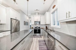 **WELCOME HOME!** Step inside this beautifully upgraded and meticulously maintained bungalow, where pride of ownership is immediately evident. Nestled in the highly desirable NW Livingston community, this immaculate 3-bedroom, 2.5-bathroom home combines modern elegance with everyday functionality. The exterior boasts durable *Hardie Board Siding* and *Class 4 shingles*, offering extra protection against hailstorms. Triple-pane windows and custom *Hunter Douglas blinds* add both style and energy efficiency, ensuring year-round comfort. Inside, the main level features soaring 10’ ceilings, luxury vinyl plank flooring, and an open-concept design that effortlessly connects the living room, dining area, and kitchen—creating a bright, airy space perfect for both entertaining and day-to-day living. At the heart of the home is the chef-inspired kitchen, complete with sleek two-toned cabinetry, gleaming *quartz countertops*, and a large central island. It’s fully equipped with stainless steel appliances, a microwave/hood fan combo, abundant cabinetry, and top-notch lighting that makes meal prep and gathering a true pleasure. The spacious primary bedroom is a private retreat, featuring a luxurious 5-piece ensuite with dual vanities, a deep soaker tub, and a walk-in closet. Large windows flood the room with natural light, enhancing the peaceful ambiance. A back boot room and laundry area, as well as a stylish 2-piece powder room, complete the main floor. The professionally developed lower level offers two additional bedrooms—each with walk-in closets—along with a modern 4-piece bathroom. High 9’ ceilings and a cozy family room with a gas fireplace provide the perfect place to unwind. Thoughtful lighting and plenty of storage make this space both functional and inviting. You'll also find a Heat Recovery Ventilator (HRV). A *double detached garage* (19'9"x19') offers ample parking and storage, and the property enjoys the convenience of a paved back alley. Located just minutes from Stoney Trail and Deerfoot Trail, this home offers quick access to downtown, shopping, entertainment, and more. Don’t miss the chance to make this dream home your own! **Call your favorite REALTOR® today to book your private showing!**