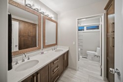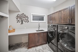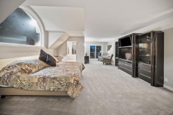 Welcome to a rare opportunity to own a fully reimagined estate backing directly onto the endless beauty of Fish Creek Park. Offering over 5,650 sq. ft. of elegantly renovated living space, this remarkable home blends luxury, comfort, and privacy in one of Calgary’s most coveted natural settings. Every detail of this home has been thoughtfully elevated. From the moment you arrive, the new cedar shake roof, triple custom skylights, and solid wood front door hint at the quality within. Inside, you’re greeted by warm, sun-filled spaces thanks to brand-new Ecoline 2X Sunshield windows throughout, casting natural light across rich Turkish marble tile flooring. The kitchen is a statement in timeless design and modern functionality. Solid maple soft-close cabinetry, new countertops, and professional-grade appliances—including a Wolf gas cooktop, Sub-Zero fridge, and Miele steam, convection, and microwave ovens—make it a chef’s dream. The adjoining living and dining spaces are ideal for entertaining, grounded by a double-sided wood-burning fireplace with gas ignition that also warms the dedicated office. Upstairs, the primary suite offers peaceful views and direct access to a new balcony—perfect for morning coffee overlooking the trees. All bathrooms have been fully redesigned with premium materials, including new tubs, vanities, fixtures, lighting and Turkish marble tiling. Even the laundry room has been completely refreshed with custom cabinetry, countertops, sink and complete with its own laundry shoot. The walkout level is built for both entertaining and everyday living. A custom bar with Spanish tile and granite countertops sets the tone, complemented by luxury vinyl flooring, new nylon carpet, and a full bathroom, bedroom, and flexible spaces for a gym, games room, or studio. Step outside into your own private retreat. The heated pool has been fully upgraded with a new liner, circulation pump, sand filter, and custom cover. DuraDeck balconies with glass railings extend from the kitchen and primary suite, while new tile, landscaping, and hardscaping make the front and backyard as functional as they are beautiful. With Fish Creek’s pathway system just steps away—maintained year-round by the city—you’ll enjoy direct access to nature like nowhere else. Behind the scenes, every major system has been upgraded: two new Lennox A/C units with chillers, a commercial-grade boiler (serviced), new sump pump, epoxy-coated garage and furnace room, fresh paint, updated lighting, and complete replacement of Poly-B plumbing with PEX. Set on a quiet street in an established, upscale community, this is more than a home—it’s a lifestyle. One that offers sophistication, serenity, and the beauty of the park in your own west facing backyard.