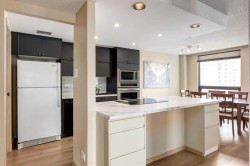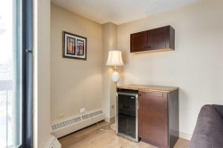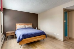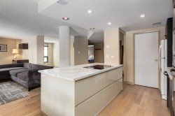 Priced to sell! Explore this beautifully updated condo featuring over 1,000 sq ft of stylish living space with laminate plank hardwood flooring throughout. At the heart of the great room is the kitchen with a spacious island, plentiful storage, and a convenient walk-in pantry. Sunlit west-facing windows brighten the dining area, and the family room flows to a sheltered balcony with fresh air and city views. The large primary bedroom includes dual closets and a sleek 3-piece ensuite. A versatile den or second bedroom, an additional full bathroom, and in-suite laundry add convenience to the layout. With a covered, gated parking stall for peace of mind, this condo is ideally located just steps from the lively shops and restaurants of 17th Avenue and offers easy access to schools, shopping, the Bow River pathway, public transit, and downtown. Experience the perfect blend of urban lifestyle and everyday comfort. Move-in ready and incredible value at this price point.