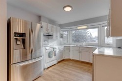 Welcome to 55 Bermuda Place NW — a beautifully updated 3-level split tucked into one of the quietest and most desirable pockets of Beddington. Perfectly positioned at the end of a cul-de-sac and beside a peaceful greenspace and playground, this home offers exceptional privacy while still providing quick access to schools, shopping, and major commuter routes.This property has seen extensive high-value upgrades, including a brand new furnace, roof, deck, and fencing completed in 2025, updated vinyl windows, doors and siding, a refreshed kitchen and living room with new built in hutch and electric fireplace, and a newer hot water tank installed in 2022. These improvements give buyers peace of mind and add modern comfort throughout.Inside, the main living area is bright and welcoming, featuring high, flat ceilings, a charming bay window, and a sleek electric fireplace. Just a few steps up is the open kitchen and dining area that overlooks the living room, creating a spacious and connected feel. From the dining area, you can access a sunny front deck with room for your BBQ and a fully fenced dog run along the side of the house.The back of the home offers a comfortable layout with a primary bedroom complete with a 3-piece ensuite, a second large bedroom, and another full 4-piece bathroom. The walkout lower level provides even more space with a third bedroom, a large family room with sliding doors leading to the backyard, plenty of storage, and a laundry and utility room.Outside, a large concrete patio leads to a truly impressive oversized garage. This exceptional garage is heated with a radiant heater, includes its own electrical sub-panel perfect for heavy tools or an electric-vehicle charger, and offers abundant space for parking and storage. There is also an additional parking stall beside the garage for added convenience.With its quiet location, extensive updates, walkout basement, and outstanding garage setup, 55 Bermuda Place NW is a rare opportunity in Beddington. This is one you won’t want to miss.