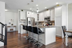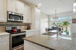 Welcome to 57 Evansglen Mews NW! Tucked away in a quiet cul-de-sac in the heart of Evanston with walking distance to a K-12 school, this beautifully maintained semi-detached 5-bedroom home offers over 2,680 sq ft of thoughtfully designed living space. With a private, fenced yard and a location that blends tranquility with convenience, this property is perfect for families seeking style, functionality, and community. Step inside to a bright, open-concept main floor featuring rich hardwood flooring and an abundance of natural light. The chef-inspired kitchen boasts granite countertops, stainless steel appliances, ample cabinetry, a pantry, and a large island with breakfast bar—perfect for casual meals or entertaining. The cozy living room centers around a gas fireplace, while the spacious dining area opens directly onto the deck, creating seamless indoor-outdoor flow. Upstairs, a generous bonus room provides flexible space for a family room, play area, or home office. The primary suite is a private retreat, complete with a walk-in closet and a spa-like ensuite featuring dual vanities, a soaker tub, and a separate glass shower. Two additional bedrooms, a full bath, and an upper-floor laundry room complete this level.bThe fully finished basement offers incredible versatility, featuring 2 more bedrooms, a 3-piece bathroom, and a large recreation room—perfect for a home gym, media room, or guest space. Outside, enjoy a spacious, landscaped yard with a deck and plenty of room for kids, pets, and summer BBQs. This home also comes with a NEW roof, NEW railing, NEW exterior sidings and eavestrough for your peace of mind! Outfitted with a attached double garage snd located just steps from a new elementary school, scenic walking paths, parks, and Evanston Towne Centre, this home offers unbeatable walkability. With easy access to Stoney Trail, Deerfoot Trail, and the airport, commuting is a breeze. Don’t miss your chance to live in one of Calgary’s most family-friendly communities!
