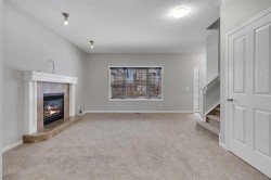 This well-maintained family home offers a bright and functional layout designed for comfortable everyday living. Upon entry, you’re welcomed by a warm and inviting living room featuring a gas fireplace and a large southeast-facing window that fills the space with natural light. The open dining area connects seamlessly to a spacious kitchen with granite countertops, a new refrigerator, and a built-in dishwasher. A window above the sink overlooks the backyard, making it easy to watch children or pets while spending time in the kitchen. The main floor also includes a convenient powder room and laundry area.Upstairs, the primary bedroom enjoys southeast exposure and includes a private ensuite. Two additional bedrooms and a full bathroom provide ample space for a growing family. New carpet and fresh interior paint add to the home’s clean, move-in-ready appeal.The unfinished basement offers excellent potential for future development, allowing you to customize additional living space to suit your needs. Outside, the good-sized backyard provides plenty of room for kids to play and offers space to build a double detached garage.Located in a highly desirable area with easy access in and out of the community, the home is just steps from a new K–9 Catholic school currently under construction and scheduled to open in 2026. This property combines comfort, practicality, and future potential in an excellent location.