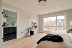 Wow! Presenting EXCEPTIONAL VALUE and LOCATION in this Large 3-story Home! Situated a short stroll to the heart of Kensington, this 3,800+ SF custom home presents like new while delivering an impressive list of upscale features including 5 bedrooms (2 primary bedrooms with ensuites), 5 bathrooms (2 steam showers), 2 laundry rooms, 2 fireplaces, a stunning open staircase & ELEVATOR! The bright main floor boasts a designer kitchen with extended cabinetry & pull-out pantry, stainless steel appliances with induction cooktop, beverage fridge, quartz countertops & a vast island with seating for 4. An oversized dining area easily accommodates large gatherings while the stylish living room with fireplace and glass doors opens seamlessly to the backyard. A chic powder room & practical mudroom with built-in storage complete this level. Upstairs, the striking open-riser staircase with glass panels leads to two full floors of hardwood-accented luxury living. The 2nd level is ideal for families offering two spacious secondary bedrooms with closet organizers & a beautifully upgraded 4-piece bath with heated floors. The 1st primary suite shares this level & is an excellent option for parents with young children. Featuring oversized windows, a custom walk-in closet & a spa-inspired ensuite with dual sink quartz vanity, freestanding tub, steam shower, & heated floors. A well-equipped laundry room with sink, quartz folding counter, & cabinetry adds convenience to this level. The 3rd floor is dedicated to refined living, highlighting a 2nd primary retreat with walk-in closet, lavish ensuite (dual quartz vanity, freestanding tub, steam shower, heated floors) & access to a sun-drenched private balcony overlooking the treetops. A spacious owner’s lounge with wet bar provides the perfect setting to relax, work from home, or enjoy quiet evenings. Completing this floor is a 2nd laundry room. The lower level brings family & friends together in a cozy family room with fireplace & a full wet bar with beverage fridge. A large 5th bedroom & 5th bathroom with heated floors round off this comfortable space. Other notable upgrades in this executive residence include 1) double insulated & drywalled garage with unique front & back doors allowing for additional parking, 2) air conditioning, 3) in-floor heating in ALL bathrooms, 4) an Elevator to Age-in-Place or Accommodate Multi-Generational Living, 5) custom built-ins in ALL closet, 6) a 75-gallon hot water tank, 7) 200-amp electrical panel, & 8) built-in ceiling speakers & security system. Nestled just steps to parks, trendy restaurants, & the vibrant Kensington district, this luxury property offers a perfect balance of tranquility & urban convenience. Its proximity to the Bow River, downtown, University of Calgary, SAIT & Foothills Hospital provides a remarkable location for work & play. With easy access to Memorial Drive & Crowchild Trail, this is a rare opportunity to own a magnificent property in one of Calgary’s most desirable neighbourhoods.