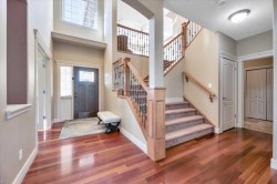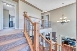 Executive Home in Springbank Hill | Mountain Views | Walkout BasementWelcome to this stunning executive residence in sought-after Springbank Hill, offering near about 4,000 sq. ft. of beautifully upgraded living space. This elegant two-storey home features 9’ ceilings and gleaming hardwood floors throughout the main level, where a spacious living room with a gas fireplace flows seamlessly into the formal dining area — perfect for entertaining.The chef-inspired kitchen is equipped with granite countertops, stainless steel appliances, a large central island, and a sunlit breakfast nook with access to the balcony. A dedicated main-floor office provides the ideal work-from-home setup.Upstairs, the vaulted bonus room showcases incredible views and soaring ceilings. Four generous bedrooms include a luxurious primary retreat with a walk-in closet and spa-inspired ensuite featuring dual vanities and a jetted tub.The fully developed walkout basement is designed for entertaining, complete with a wet bar, large family room with fireplace, a fifth bedroom, and a full bath — opening out to a covered patio and landscaped yard.Custom finishes, panoramic views, and a premium location make this a truly exceptional home. Don’t miss your chance — book your private showing today!