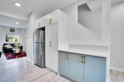 Welcome to your almost brand-new three-story townhouse nestled in the exclusive community of Tuscany. Backing onto a natural area, and there is no neighbor on the back of your house. This property is the most upgraded unit in the project and offers the perfect blend of tranquility and convenience. The main level includes a magnificent kitchen with an abundance of cabinetry, ensuring there's a place for everything. Your inner chef will rejoice with modern two-tone close cabinetry, complemented by sleek quartz countertops and stainless steel appliances, and a Chef loved Gas Stove. Luxury vinyl flooring adds a touch of elegance to the entire main floor and provides comfort throughout. Step onto the good-sized balcony to enjoy morning coffee or evening sunsets from a full wall-sized window in the dining room. The upper level features a generously sized second room and convenient laundry space, along with a large main bathroom. Retreat to the master bedroom, complete with an en suite featuring fully upgraded standing shower with times and double closets. We have upgraded and added future electrical and mechanical tie-ins for the ceiling fan to both bedrooms and also the living room if the new owners wish to install them. Access to Tuscany amenities - community centre, splash park, walking paths, and ravines. Quick access to C-Train, Stoney Trail, and Crowchild Trail. Minutes to the mountains, Cochrane, inner city, south Calgary. Many major roadways, including Stoney Tr, Highway 1A , and many more. Minutes to shopping, restaurants, and services.