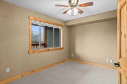 Bright 1-Bed + Den with Mountain Views & Modern Comforts in Canmore - This south-facing 1-bedroom plus den, 2-bath apartment offers unbeatable value and a lifestyle surrounded by Canmore’s natural beauty. Located on the 3rd floor, you’ll enjoy beautiful mountain views that remain even after nearby construction — with the new build helping block noise, making your balcony time peaceful and private. Inside, the open-concept layout features a kitchen with black granite countertops, island, and knotty alder wood trims for that warm mountain charm. Vinyl plank flooring flows through the main areas, while carpets in the bedroom and den add cozy comfort, highlighted by in floor heat. An electric fireplace creates a welcoming ambiance, and ceiling fans in every room keep the air fresh year-round. You’ll love the 2024 laundry appliances, two parking stalls (one titled underground, one assigned outside), and a secure storage cage. The building is well maintained and includes an elevator, common workroom, a gym and a dog park—perfect for a convenient, active lifestyle. With low condo fees and taxes, this home is ideal for first-time buyers, singles, or young families who want to own in Canmore without compromise.