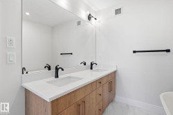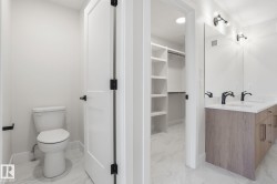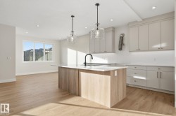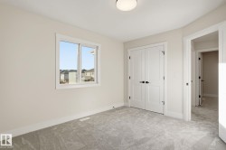 BRAND NEW 2-STORY HOME – This beautifully crafted home offers modern comfort & functionality complete w/an oversized double-attached garage, featuring 9’ ceilings on both the main & basement levels. The bright main floor features an open-concept great room, dining nook & chef’s-dream kitchen w/quartz countertops, massive island, chimney-style hood fan, flr/ceiling cabinets w/under cabinet lighting, soft-close doors/drawers & a walk-through pantry. Large windows throughout. Upstairs the large primary suite showcases a vaulted ceiling, custom walk-in closet & a luxury 5-piece ensuite w/double sinks, tub & glass-door shower. A bonus room w/sliding doors, 2 additional bedrooms, main bath & laundry room complete the upper level. Added upgrades include an electric fireplace w/mantle, black plumbing fixtures, upgraded wrought iron railings, triple-pane windows, HW on demand, H.R.V. System, 8' tall doors, & basement rough-in plumbing. Constructed by experienced and quality trades.