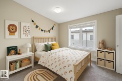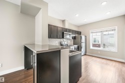 Welcome to this stunning and well-maintained spacious 2 bedroom/2.5 bath townhome in the desirable Walker. Main floor boasts a roomy open concept layout, 9' ceilings & quality finishings. The functional chef's kitchen includes S/S appliances, walk-in pantry & eating bar. Living room features an attached balcony to enjoy the fresh air & green space. The main level is equipped with a half bath & vinyl flooring. On the upper level, you'll find two well-sized bedrooms. Primary bedroom has 3pc ensuite & walk in closet. A second full bathroom and laundry closet complete the upper level. Flex room on ground level is perfect for a home office space or extra storage. Other features include a single attached garage and energy-efficient mechanical including tankless hot water for a lower utility bill. This well maintained complex offers visitor parking & is conveniently located close to shopping, walking trails & lake. Quick proximity to Anthony Henday, South Common, schools & public transportation. A must see!