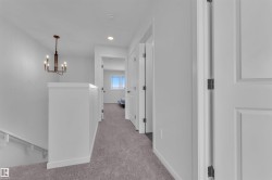 Discover modern living in Aster, one of Edmonton’s most desirable communities, with this beautifully crafted Impact Home where style and function meet seamlessly. The main floor features 9-foot ceilings that enhance the bright, open feel, while the gourmet kitchen takes center stage with quartz countertops, elegant cabinetry, and a stylish tile backsplash—ideal for both everyday meals and entertaining. The living and dining areas flow effortlessly, complemented by a convenient half bath. Upstairs, the primary suite is a true retreat with a 4-piece ensuite and walk-in closet. Two additional bedrooms, a full bathroom, and upper-floor laundry add everyday comfort. A separate side entrance to the basement offers future potential for a suite or added living space. Built with quality and care, this home is backed by the Alberta New Home Warranty Program—because your new beginning deserves complete confidence.