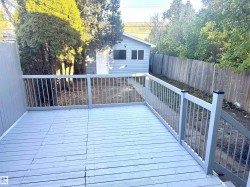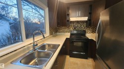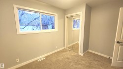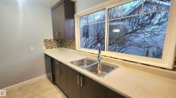BEAUTIFULLY RENOVATED 1/2 Duplex in "Canora" with a 2nd Basement Kitchen on a Quiet Tree Lined Street * This Freshly Painted property features 3 bedrooms up & 1 Spacious Bedroom down, with 2 Separate Living Rooms & common area laundry room with laundry sink in the finished basement. The upstairs Kitchen has newer Dark maple cabinets with lots of storage, plenty of counterspace and newer appliances. Upgrades include newer windows, new vinyl flooring, new upstairs carpet, and a Stylish freshly updated washroom. The Newer updated lighting fixtures makes this main floor homes Really Modern, Warm & Chic'. Major Improvements to this property include a Hi-Efficiency Furnace, Newer HWT & A DOUBLE GARAGE built within the last 5 - 6 Years. Leading through the Newer Primary Bedroom patio door is a LARGE Patio deck to a fully fenced & private little yard. This Half Duplex is PERFECT for the the Extended Family Needing TWO Kitchens! Quick Possession Available