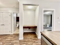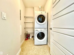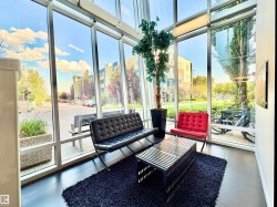 Welcome to The Ion in Ambleside, where trendy living meets unbeatable convenience with quick access to Anthony Henday, Whitemud, Downtown, and the airport. This former showhome features a spacious bedroom with large closet, versatile den/office, stylish peninsula kitchen with stainless steel appliances, and a bright living room with access to a private balcony and fenced green space—perfect for small pets. Complete with in-suite laundry, ample storage, and access to top-tier amenities including a fitness centre, media room, social/amenities room, guest suites, BBQ areas, and heated underground parking, all for low condo fees of just under $400 covering heat, water, sewer, and amenities, this home offers modern comfort in the upscale Ambleside community.