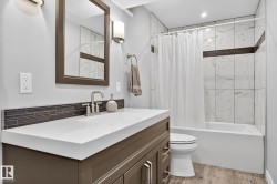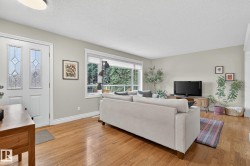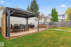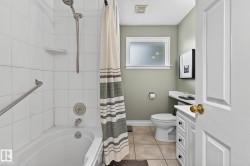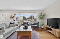 Don’t miss this exquisitely cared-for home in High Park! Perfectly located across from a playground and park, on a beautifully manicured lot, this charming bungalow has been meticulously maintained inside and out. Enjoy the bright, open living and dining areas as well as the upgraded kitchen with granite countertops overlooking the stunning backyard. The main floor features a full bathroom and three spacious bedrooms. The separate entrance leads to a fully finished basement with a large family room centred around a beautiful brick fireplace, a fourth bedroom with a newly renovated ensuite, laundry, and new high efficiency furnace (2025) and plenty of storage. Stay cool all summer with brand new air conditioning (2025), and enjoy the oversized double garage with covered storage or entertainment area, a large tiered deck and west facing back yard. A true move-in-ready gem in one of Edmonton’s most desirable mature neighbourhoods!
