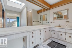 Unlock the potential of this fabulous property with sweeping River Valley views. Built in 1974 and offering nearly 2,500 sq ft of living space on a 628 sq m lot, this home is filled with opportunity. The main floor welcomes you with two spacious living and dining areas bathed in natural south-facing light. Warm wood detailing throughout creates a funky mid-century modern vibe. Upstairs, you’ll find a massive primary suite with an ensuite featuring a skylight, plus two additional bedrooms, a full bath, and an expansive patio overlooking Wayne Gretzky Drive and the River Valley, an entertainer’s dream. The main level also features an oversized attached garage. Downstairs, the basement is designed for enjoyment with a bar, sauna, full bath, and plenty of space for hosting. Located steps away from everything Highlands has to offer,Ada Boulevard, the River Valley, and Concordia University. This home’s potential is unmatched. With the right vision, it can be transformed into an extraordinary dream home.