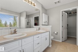 Welcome Home! Located in a quite CUL-DE-SAC, close to all AMENITIES, and a path that leads to the fountain LAKE & WALKING TRAIL, this home has what you have been waiting for. The main floor features an open LIVING ROOM with gas FIREPLACE, Kitchen, 2-piece bath, and NEW FRIDGE with a water line. Out the Patio doors is a MASSIVE YARD AND DECK, WITH FENCED DOG RUN. Space galore for BBQ's, family events, or just kids to run and play. Upstairs you will find a cute Family/Play room, Primary bedroom with WALK-IN-CLOSET & 5- piece ENSUITE, 2 more Bedrooms, UPSTAIRS LAUNDRY and ANOTHER 4 piece bath. The basement is mostly finished with a Rec. Room (additional living space), a utility room, and plenty of EXTRA STORAGE. NEW PAINT throughout and NEW FURNACE WITH A/C (on contract). Lots to love in this home, add it to your favorites!