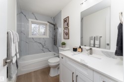 Get Inspired in Newton! Professionally Renovated with a fantastic floorplan. Main floor renovated brilliantly finished featuring 3 Bedrooms and 4 pc bath! Main floor features gorgeous vinyl plank flooring, a spacious living room with fireplace, remodeled kitchen with quartz counters and a full appliance package. 3 large bedrooms and the 4 pc bath has a SMART Shower. The basement has a separate entrance and features a 3 pc bathroom. The basement layout is perfect for a basement suite and already has a bedroom framed in. Outside is your fully fenced backyard, Single Detached Garage and RV Parking! Highlights include Recessed Lighting Throughout, Lights, New Windows (Egress in the basement), Quartz throughout, Ventilation fans, Exterior and more! Modern elegance meets practicality!