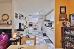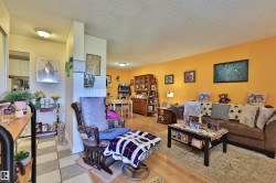 Discover this charming carriage-style condo, offering a single-level layout with the convenience of a ground-level entrance. Spanning 959 square feet, this home is designed for comfort and functionality. The spacious living room features a cozy wood-burning fireplace, perfect for quiet evenings or entertaining guests. The open dining area flows seamlessly into the kitchen, making daily living easy and inviting. With two generous bedrooms, there’s room for family, guests, or a dedicated home office. The primary suite is complemented by a walk through closet that accesses the large main 4 pc. bath. This unit has in-suite laundry for ultimate convenience. Step outside and enjoy a southwest view of the ravine, providing a peaceful natural backdrop and plenty of light throughout the day and convenient access to walking trails. Ideal for first-time buyers, downsizers, or anyone seeking low-maintenance living with charm, this home blends comfort, privacy, and location all in one. Bonus crawlspace storage!