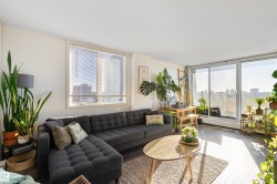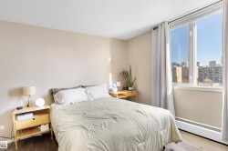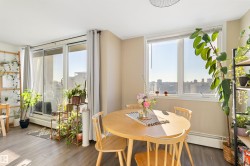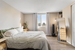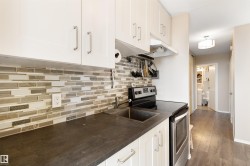 Discover easy downtown Edmonton living in this TOP FLOOR cozy 1-bedroom unit with amazing river valley views. Big south-facing windows let in bright sunny light all day, and patio doors lead right out to your own private balcony, perfect for a BBQ and enjoying the valley scenery. The updated kitchen has a smart layout and flows into the dining area, offering space for your dining set or to create a cozy office nook. The full 4PC bathroom is easily accessible from the lg primary bedroom. New vinyl plank flooring throughout creates a warm and modernized space with lots of extra storage closets. Just steps from your door is a shared rooftop patio that's awesome for entertaining friends or just enjoying the river valley views. Low condo fees include HEAT, WATER AND ELECTRICITY. The building has new roof, elevators and a healthy reserve fund! You’re walking distance to the LRT, river valley trails, local shops, cafes, and restaurants. Perfect for professionals, students or investors for a turnkey lifestyle!