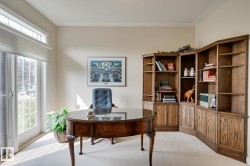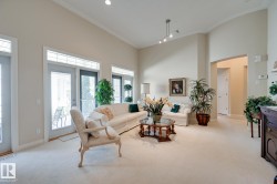 Discover the ultimate blend of comfort, elegance, & security in the gated community of Eagle Point! Low-maintenance living at its finest, this exclusive enclave offers lock-&-leave convenience for travel while surrounding you w/ beauty & sophistication. Step inside this 1,916 sq. ft. half duplex bungalow & be greeted by a striking circular foyer leading to a versatile den/bdrm. The open-concept design features soaring 12’ ceilings in the living & dining areas, creating an expansive, light-filled atmosphere ideal for both entertaining & everyday living. The kitchen is a chef’s dream, complete w/ s/s appliances, gas cooktop, granite island & walk-in pantry. Expansive windows bring the outdoors in, while the 23’ deck is the ideal setting for morning coffee or evening sunsets. Unwind in the spacious primary suite, featuring a spa-like 5-pc ensuite w/ luxurious glass shower. Just steps away from serene river valley trails & private golf club, this home combines the best of nature & secured urban living.
