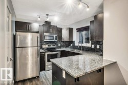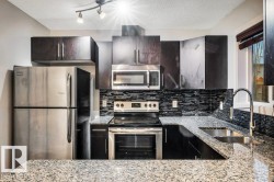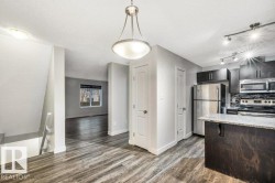 Make this affordable three-bedroom homes yours. With appealing features like a double attached garage, end unit townhouse, 3 spacious bedrooms upstairs, 2.5 bathrooms including a 3pc primary ensuite, large living room with feature wall perfect for hosting guests, kitchen upgraded with quartz counters and lastly luxury vinyl plank flooring throughout the entire unit. The location is prime with amenities all within walking distance from schools, daycare, loads of shopping and future LRT expansion.
