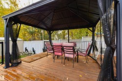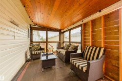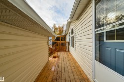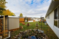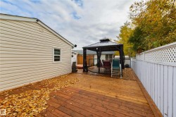 Welcome Home! Step into this beautifully maintained and freshly updated mobile home featuring vaulted ceilings and an open, inviting layout. The bright kitchen offers plenty of counter space, a center island, and flows seamlessly into the main living area perfect for both relaxing and entertaining. Freshly painted throughout with new baseboards, this home feels crisp and move-in ready. The spacious primary bedroom includes a walk-in closet with custom built-ins and a private ensuite complete with a double-wide shower. Practical updates include brand new heat tape, recent leveling, newer roof, and new skirting giving peace of mind for years to come. Outside, enjoy the double detached garage, a handy storage shed, and a lovely 3-season room built off the deck. The gazebo stays, making it easy to enjoy the outdoor space from day one! this home combines charm, function, and thoughtful upgrades, ready for its next owners to simply move in and enjoy.