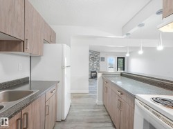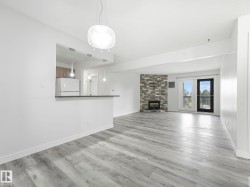 BEST PRICED CONDO IN SOUTHWEST EDMONTON! This spacious and fully renovated top-floor 2-bedroom condo offers 952 sq ft of stylish living in a highly desirable southside location. Priced to sell, this unit stands out as one of the best value opportunities in the area. The bright open-concept design features a modern kitchen with updated cabinetry, sleek countertops, and an eating bar that flows into the dining and living spaces. Upgrades include plank vinyl and ceramic tile flooring, a contemporary floor-to-ceiling stone-faced fireplace, and modern lighting throughout. The renovated 5-piece bath with dual sinks connects to a large primary bedroom with a walk-in closet. Enjoy the convenience of in-suite storage and a massive balcony perfect for outdoor relaxation. Located steps to the LRT, shopping, parks, and restaurants, with easy access to major roads. A must-see for first-time buyers and investors seeking affordability, style, and a PRIME SOUTHWEST EDMONTON location.