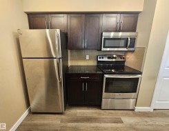 Stunning THIRD floor 2-bed, 1-bath condo in the south of Walker Lakes (very close to Summerside and Orchards) – South Edmonton’s hidden gem neighborhood! Imagine waking up to peaceful green-space views from your massive private balcony (perfect for morning coffee or evening wine). Whipping up dinner in your sleek, modern kitchen with granite counters, rich caramel cabinetry, and stainless steel appliances. In-suite laundry + a luxe bidet. Rough-in already done for A/C – stay cool all summer long is an option. Heated underground parking (no more scraping ice in -30!). LOW condo fees that INCLUDE heat & water – huge savings! Completely move-in ready (this unit is like NEW) with brand-new flooring / carpet throughout, a ceiling fan in the primary bedroom, and that fresh “nobody’s lived here vibe.” Whether you’re a first-time buyer ready to stop renting, a professional who wants zero maintenance, or an investor hunting for a cash-flowing beauty in Canada's hottest market.