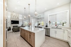Custom-built 2 storey in Aurora with 3,800 sq ft of total living space, 5 bedrooms, 4.5 baths, and a triple tandem heated garage. The open main floor showcases soaring 20’ ceilings, a bright living room with gas fireplace, a modern kitchen with quartz counters, stainless steel appliances, and a dedicated spice kitchen with separate entry. Upstairs, the primary suite offers vaulted ceilings, a spa-inspired 5 pc ensuite with steam shower, and walk-in closet, along with 3 additional bedrooms featuring walk-ins, Jack & Jill bath, full bath, and a large laundry room. The fully finished basement features a theatre room, bedroom, 3-piece bath, ample storage, and a separate side entrance for added flexibility.