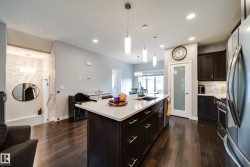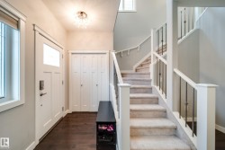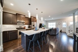 Welcome to this gorgeous WELL MAINTAINED 2-storey home in the vibrant community of Griesbach featuring an INCOME GENERATING 1-bedroom legal garage suite (potential mortgage helper of $1,200+/month)! Located on a LARGE LOT this home offers over 1,900 sqft of total living space, open concept floorpan, 4 bedrooms, 3.5 baths, A/C, and a double detached garage! The bright main floor showcases hardwood floors, an open-to-below design, and a chef’s kitchen with stainless steel appliances (gas stove), quartz counters, tile backsplash, and access to the deck and fenced large backyard. Upstairs offers 3 spacious bedrooms, including a beautiful primary suite with 3-pc ensuite and walk-in closet. The fully finished basement features a large rec room, bedroom, 2-pc bath and storage. Garage suite is self contained 1 bedroom, 1 bathroom, kitchen, living/dining room and laundry! Located in a family-friendly neighbourhood near schools, parks, shopping, and amenities—this is the perfect home and investment in one!