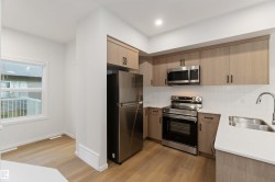 Located in the amazing community of Kinglet, this end-unit home offers incredible value with 3 bedrooms, 3 bathrooms, and a separate side entrance leading to your own LEGAL BASEMENT SUITE—perfect for added income potential. Inside, you’ll find a bright, open floor plan with modern finishes throughout. The kitchen features quality cabinetry, a large island, and all appliances included, making this truly turn-key. Enjoy the convenience of the already constructed detatched garage, upper-floor laundry, and a spacious primary suite with its own ensuite. Fully landscaped with your deck and fence included this home is truly turn key! Whether you’re an investor or a buyer looking to offset mortgage costs, this property delivers an excellent opportunity in one of Edmonton’s growing, nature-focused communities.