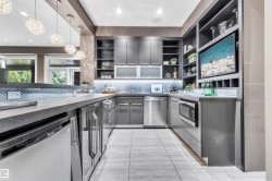 Modern luxury welcomes you to this expansive walk out estate w/over 6500sqft of living space in the prestigious community of WestPointe Estates.Built by Award-winning Vicky Homes this residence will impress at every turn.The spacious chefs kitchen features dual islands,premium appliances,quartz+walk-thru pantry.The main floor offers living room,great room,office,mudroom,2pc bath+access to the two garages.Upstairs the primary retreat features a spa ensuite,grand closet+coffee bar.Three additional bedrooms(each w/ensuites),craft room+homework space complete upper level.The basement is an entertainers dream,offering sports media room w/TV wall,bar,hidden wine cellar,separate theatre room,gym,5th bedroom,bath+walkout access to patio w/outdoor kitchen.The exceptional yard features oversized deck,tranquil rock/water garden+firepit.Upgrades:Leather Flooring,3 Balconies,Home Automation System,12 TVs,Custom Cabinetry,Gem Stone Lighting...The list is endless!Perfectly located,fronting a park+backing a walking path.