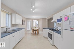 Beautifully Updated Corner-Lot Home in Miller. Welcome to this move-in-ready 4-bedroom, 2.5-bathroom home with a large, fully fenced yard in one of North Edmonton’s most family-friendly communities. Recent upgrades include new shingles/roof (2023), fresh paint throughout (2023), & brand-new carpet (2023)—offering peace of mind & a modern, fresh feel. The main floor features a bright and spacious living room w/new flooring, a cozy gas fireplace, & a large window. The kitchen is equipped w/white appliances, including a gas stove perfect for cooking enthusiasts, & flows seamlessly into the dining area—ideal for hosting family gatherings—while overlooking the huge yard w/a large deck. Upstairs, the primary bedroom comfortably fits a king-size bed & offers a full ensuite. Two additional bedrooms share a second full bathroom. The partially finished basement includes a large 4th bedroom & open space ready for your personal touch. Situated just minutes from parks, schools, & shopping, this is the one to see!