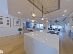 Beautiful 6 bdrm home in the desirable neighbourhood of Windermere. Spacious OPEN CONCEPT main floor with HIGH END APPLIANCES, SPICE KITCHEN, 2 LIVING AREAS and HIGH CEILINGS.Enjoy the convenience of a MAIN FLOOR BEDROOM with 3 pce ensuite & MUDROOM and additional powder room. Upstairs you will find a large loft area and OPEN TO BELOW in two areas!! The primary bedroom features a 5 pce ensuite and a large walkin closet. Directly outside the primary bedroom, you will find UPSTAIRS LAUNDRY and an additional two bedrooms - both with walk in closets and their own ensuites! Basement features a large open layout suitable for pool table, games room etc. with WET BAR. This is a stunning home, close to schools, transit and shopping!!