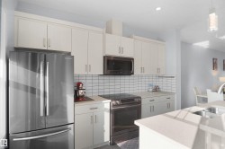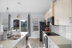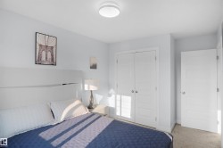 Welcome to this beautifully maintained END UNIT 2-STOREY TOWNHOME in the heart of Windermere - LANGDALE. Built in 2017 and offering over 1,900 sq.ft. of total living space! Features include 4 bedrooms, 3.5 bathrooms, and a double attached garage. The main and upper floors offers approximately 1,540 sq.ft. of living space above grade, while the fully finished basement adds an additional 365 sq.ft., complete with a bedroom and full bathroom—ideal for home office, guests or extended family seeking privacy. Enjoy an EAST-FACING home with a bright open layout, modern finishes, and a HUGE BALCONY, perfect for entertaining. Located in a quiet, beautifully kept STUCCO EXTERIOR condo complex, with visitor parking right next to the home for added convenience. Steps to shopping, schools, parks, and with quick access to major highways. Approximately 20-25 minutes to Edmonton International Airport. A fantastic home in a highly desirable location!!