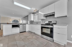 Affordable five-bedroom bi-level, featuring a beautifully renovated kitchen and bathroom! This bright and inviting property backs directly onto a peaceful greenspace and offers a total of 5 bedrooms, 2.5 bathrooms, and a double attached garage. The updated kitchen showcases modern white cabinetry, quartz countertops, stainless steel appliances, and tile flooring. Adjacent to the kitchen is a dining area with access to a private back deck perfect for morning coffee or evening relaxation. The refreshed lower level is filled with natural light and includes a spacious family room with a cozy corner gas fireplace, a second full kitchen, two additional bedrooms, and a 3-piece bathroom. With laundry on both levels, this home is ideal for hosting short-term guests or accommodating a multi-generational family. Enjoy a fully fenced, east-facing backyard that opens directly to the greenspace behind. Located in the quiet, family-friendly community of Blackburne, you’ll love the no-through roads, abundance of trail.