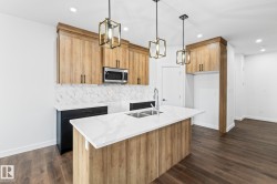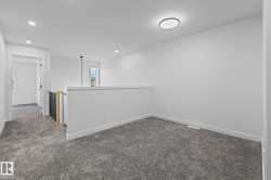 Welcome to this beautifully designed duplex that perfectly blends functionality and modern style. The main floor offers a versatile den or home office, a convenient 2-piece bathroom, and an inviting open-concept layout that connects the kitchen, dining, and living areas seamlessly ideal for both everyday living and entertaining. Step out to your backyard for a breath of fresh air or summer barbecues. Upstairs, you’ll find three spacious bedrooms, including a primary suite featuring a walk-in closet and a private 4-piece ensuite. The additional bedrooms each share another 4 piece bathroom. Completing the upper level is a generous bonus room and the convenience of upper-floor laundry. This home checks all the boxes for comfortable, stylish living! Close to many amenities including schools and shopping centers