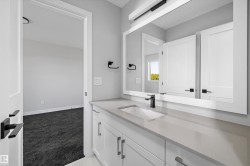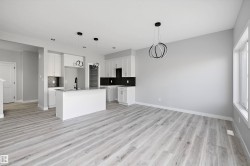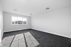 Welcome to this exceptional new build, ideally located in a quiet, family-friendly area of Gibbons. This modern home offers a rare triple attached garage and a thoughtfully designed floor plan. The spacious front foyer includes a large walk-in closet and leads to a stylish half bath. The main floor features an open-concept living space with a designer kitchen, ample cabinetry, and a bright living room anchored by a sleek fireplace. Upstairs, you’ll find a central bonus room, a full 4-piece bathroom, and a convenient upstairs laundry. Three well-sized bedrooms include a stunning primary suite, complete with a luxurious 5-piece ensuite and an impressive walk-in closet. Also a jack and jill bathroom for the kids to share. A perfect home for growing families or anyone seeking comfort and style.
