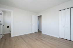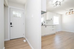 Fully renovated bi level home situated on large corner lot with two driveways. With in walking distance to two schools, bus stops, and several amenities. Main level unit welcomes you with covered deck and own entrance and consists of three bedrooms including the master bedroom with a half bath, full bathroom and new modern kitchen as well as on in unit laundry. Basement unit is separate completed with own entrance, parking, and laundry and boasts three more bedrooms, full bathroom an adequate under the stairs storage. Icing on the cake is the semi attached single car garage great for our long winter season. Back yard is partially fenced and complimented with a shed for storage, and an easement beside for privacy. Book your viewing today as this home will be sure to please.